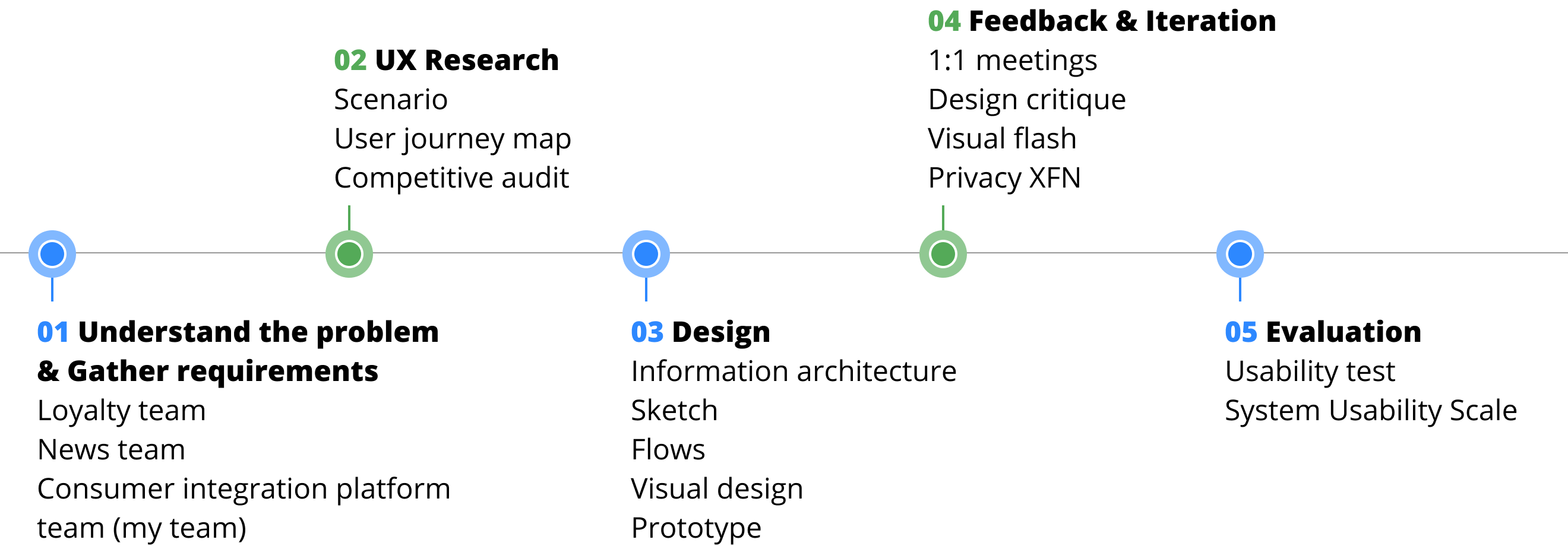 1 product designer (me), 1 UX researcher, 2 content strategists, 1 PM, 3 software engineers